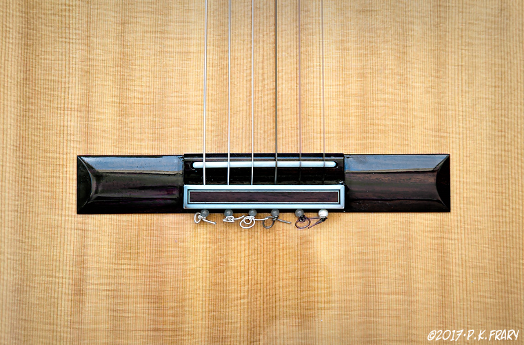 Hirade TH-90 | The bridge is a traditional Ramirez style design save for the closed saddle slot. I use beads and knots instead of traditional string ties.