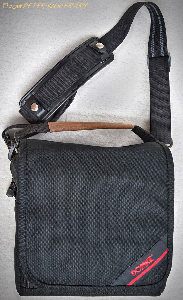 This is my first Domke bag and it revealed excellent fit and finish, quality materials and a groovy military surplus design ethic. Yes, it's pricey but has surprising storage in a small space. The soft cotton canvas molds to your body thereby taking some weight off the shoulder. Even loaded with a 5D MKII and EF 70-200 4L IS USM I found it comfortable to hump around town all day, provided I wear it sling style with a shoulder pad. The cotton canvas is easy on clothing and does not "sand" delicate fabrics like ballistic nylon on other bags.