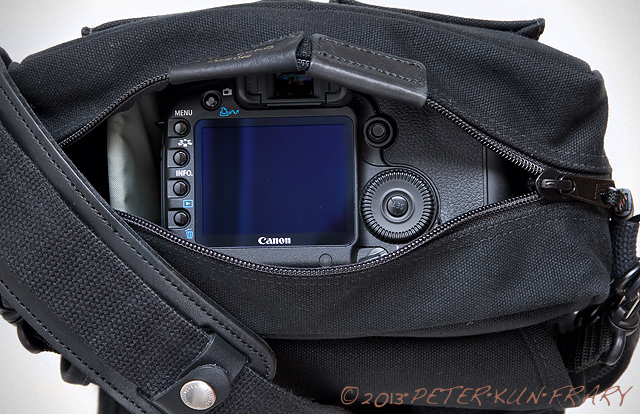 The main zipper is bothersome as it rubs the top of my 5D MKII each time I pulled it in or out, so I stitched a leather bumper in the center of the zipper. I can still zip the bag far enough to keep out dust and rain as long as the main flap is down.