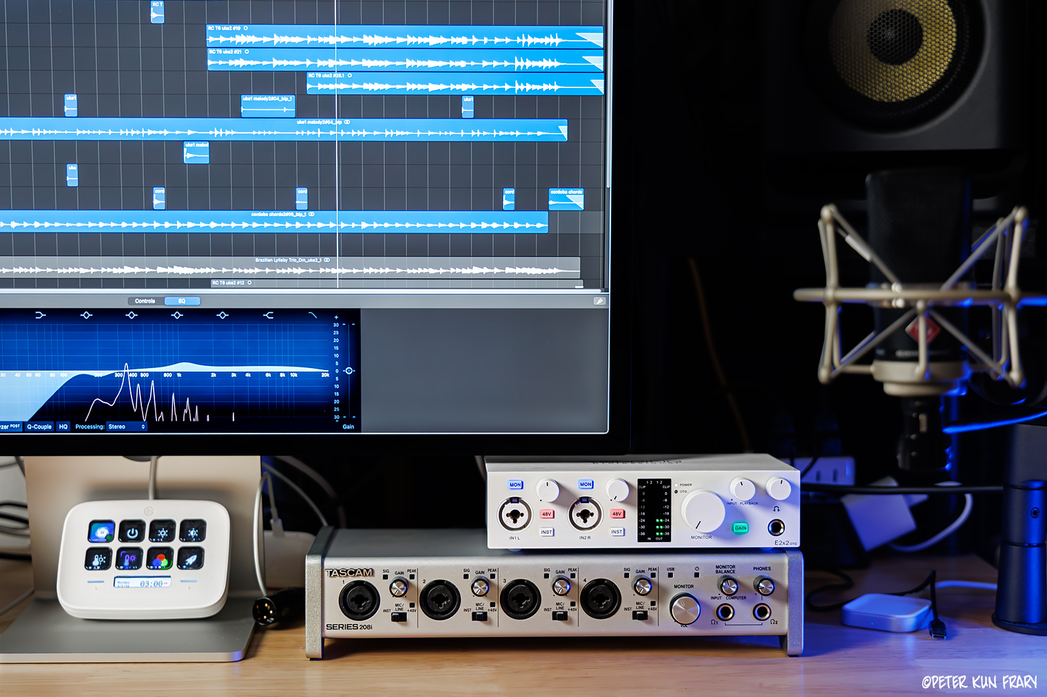 The above tracks were mixed using Beyerdynamic DT 770 Pro X headphones and KRK Rokit 5 Gen 5 monitors plugged into the E2x2 OTG. The Topping DAC renders audio clearly and accurately—almost too much detail! I check the final mix with Sennheiser HD650 and Apple AirPods to make sure they translate to other sound systems.